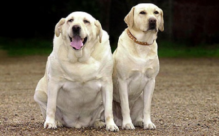 L'image montre deux chiens de la même race, mais le chien de gauche lutte clairement contre l'obésité alors que le chien de droite a un poids idéal.