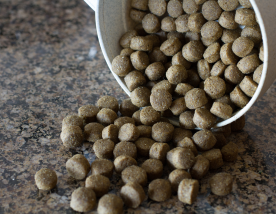 Les croquettes sont à privilégier pour votre compagnon à quatre pattes. La nature abrasive des croquettes permet un nettoyage mécanique des dents. Si votre chien souffre beaucoup de tartre, un aliment spécial peut l'aider. Choisissez Royal Canin Dental, par exemple.