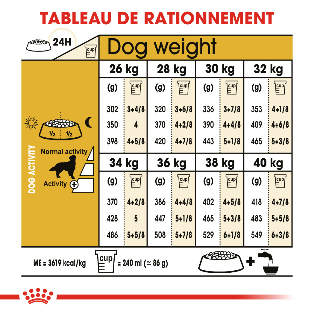 Combien de gramme doit-on donner de Royal Canin Golden Retriever Adult pour chien 3kg à chaque fois?